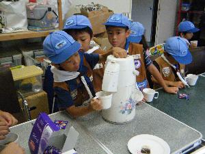 | 初めてティーバッグで紅茶を入れた スカウトも多かったです。 火傷に気をつけてね。 もちろん、砂糖の調整も、 氷を入れるのも、自分で。 美味しく頂きました。 |