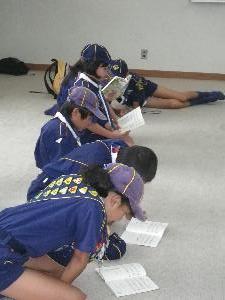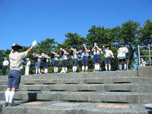 | 歌の練習。 こういったときに集中して 練習できるね。 歌のあるスカウト活動は、 楽しくなります。 |