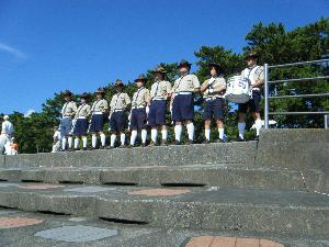 リハーサルの様子です。 今日は、もうじきカブ隊から 上進してくるスカウトに演奏の様子を 見学してもらいました。 |