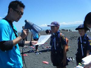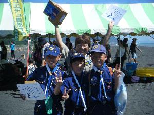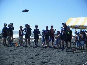 サンダル飛ばしやビーチフラックで 好成績をおさめたスカウトもいます。 副長も上位入賞らしい?? |