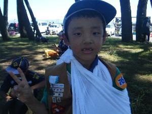 | また、今日の集会で小枝章10本 銀ダム章を受章したスカウトがいます。 残念ながら 学校の鉄棒から落ちて 骨折中ですが・・ みんなも頑張って 小枝章をゲットしよう!! |
