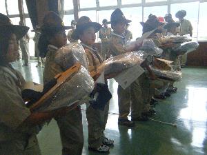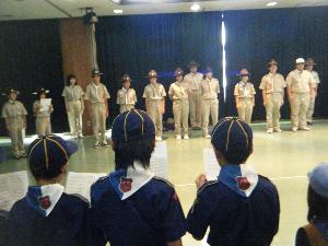 スカウトたちは みんな真剣に見ていました。 今度は自分達だね。 |