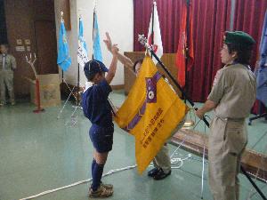 | カブ隊への上進 ”やくそく”の式です。 カブ隊のさだめを しっかり守ろうね。 |
