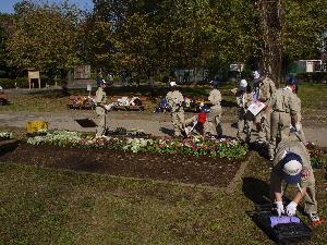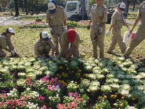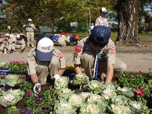このスペースは ボーイスカウト静岡地区が担当。 各団持ち回りで、花壇を作ります。 |