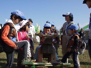 ビーバー隊とカブ隊は 安倍川流木クリーン祭に お邪魔してきました。 木でできた遊具に 乗りました。 |