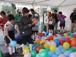 ”スカウトプール” の風船膨らませ。 何とその数、1000個 |