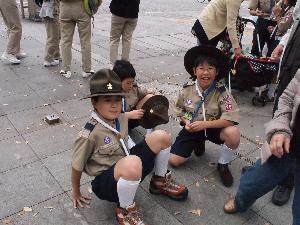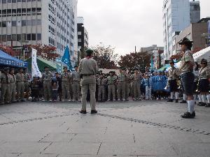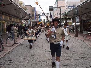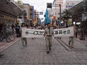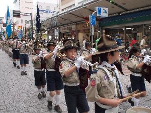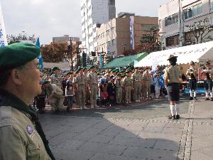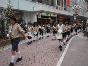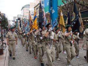 | メインイベント スカウトパレード 市内繁華街をパレードします。 県中部の他地区のスカウトや ガールスカウト、海洋少年団さんも 一緒にパレードしました。 |