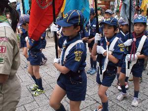 5年生は、ここでデビュー 堂々の演技でした。 他団はBSが旗手を務めましたが、 うちはBSは皆演奏なので カブスカウトが担当。 頑張りました。 |
