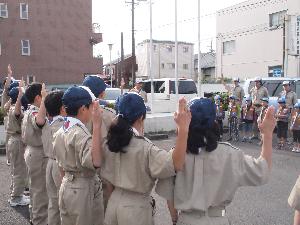 ボーイ以上はちかい それぞれ唱和します。 しっかり唱和しないと 身に付かないという 考え方です。 |
