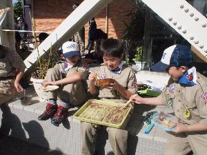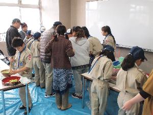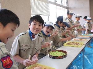 | 味付けやトッピングの準備は 団委員さんやお母さん方 それとスカウト |