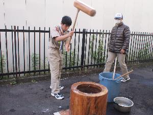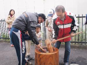 | 団合同の集会 年末恒例のお餅つきです。 |