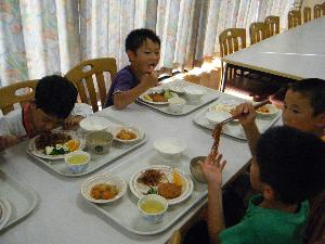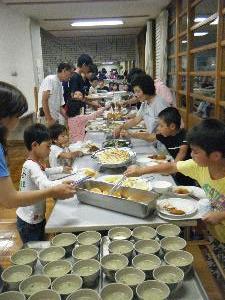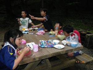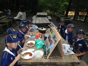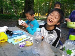 | 大変涼しく、天気も良くて、快適なキャンプでした。 先ずは、食事風景から。 |
