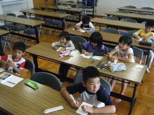 | キャンプの思い出を、葉書にこめて、送ります。 お家の人や、おじいちゃんおばあちゃんに。 |