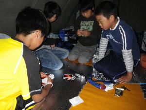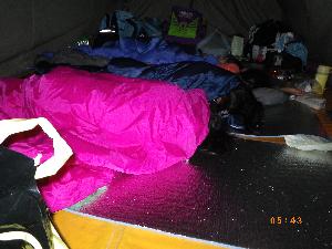 | テント内の様子。 スカウトは楽しくやってます。 少し虫が多かったそうですが・・・・・ | ||