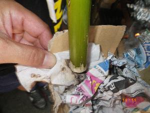 | その火を大事に火床に移します。 | そして、火吹竹で火を大きくして、 | カマドに移します。 |