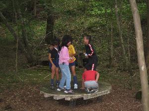 | ここにはアスレチックがあります。 様々な遊具に挑戦です。自然の中での遊びって、楽しいですね。 |