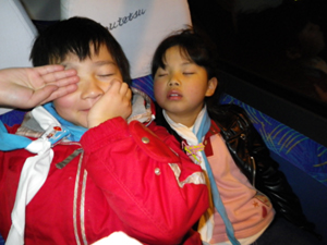 すぐに撃沈!!! | 車窓からの富士山 寝ていたスカウトは、残念です。 |