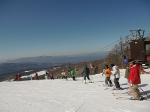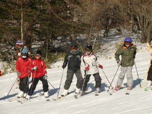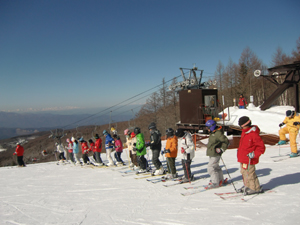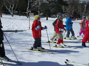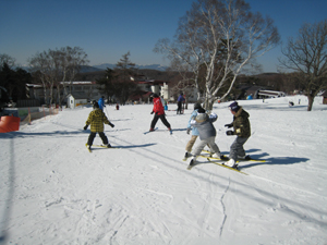 | 白樺国際スキー場到着 | 早速、レッスン開始 | 初めて板を履くスカウトもいます。 インストラクターに、 手取り足取り教わりました。 |