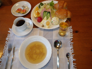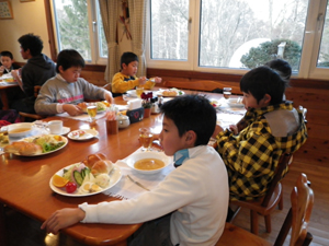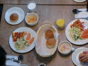 | 朝食の様子です。おいしそうなご飯で、 大満足。 今日もすべるぞ |