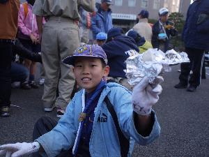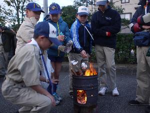 | 上手くできました。 美味しいぞ。 このスカウトのお餅は お父さんが2日前についた ものだそうです。 美味しいわけだ! |