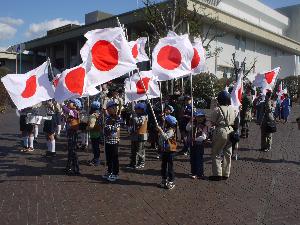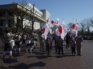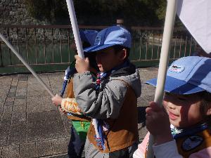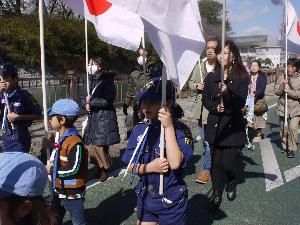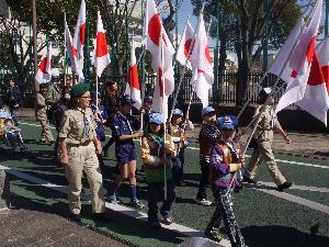 カブ隊とビーバー隊は、日の丸隊。 しっかりパレードしようね。 |