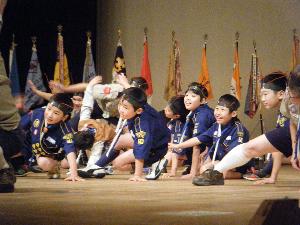 | セレモニーで カブ隊の”やくそく”を唱える 26団カブスカウト 立派です。 堂々としたものでした。 |