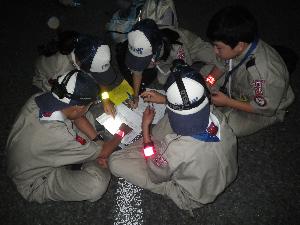 | 班で課題をこなしながら 明日の朝まで歩きます。 |