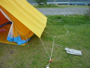 やっと建ったテントも 支柱がこの通り。 凄い状況です。 |