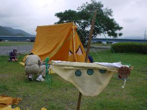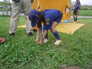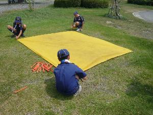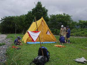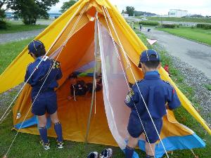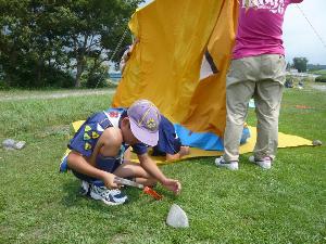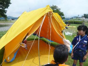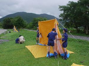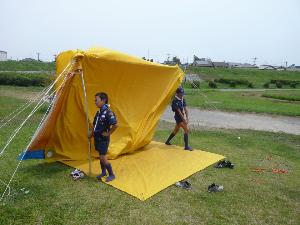 | 先ずはテント。 よく練習をしているので 順調な作業です。 |