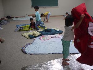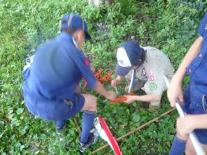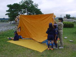 ビーバー隊は、宿泊練習 なかなかの冒険です。 寝床を作ります。 |
