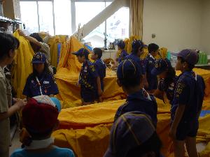 カブ隊の集会はテントの格納から |