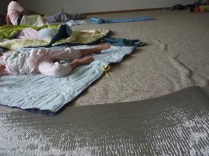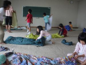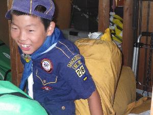 | 寝袋も自分で。 リーダーは、ほんの少し お手伝いしただけでした。 |