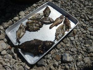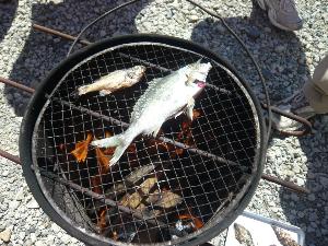 | 獲物はその場で調理されます。 魚のアジがよくわかるように 素焼きにしました。 |