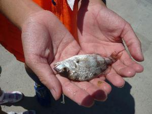 小さいといえども”マダイ” 立派なものです。 他にも色々つれました。 クロサギ、ジンダベラ、コノシロ ゴンズイ、ネンブツダイ、カワハギ オオスジイシモチ・・・ 40センチクラスの黒鯛の バラシもありました。 残念!! |