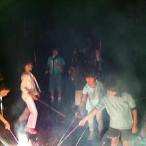 夜はキャンプファイアー なんといっても、 キャンプの楽しみです。 今年は掟破りの花火も少し・・ |