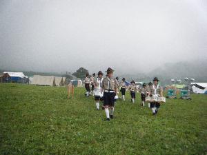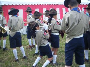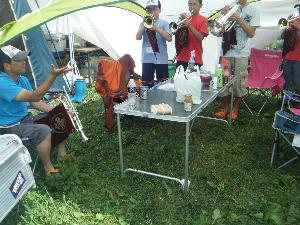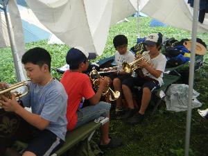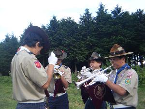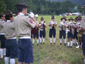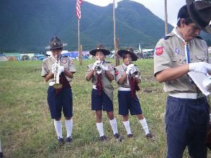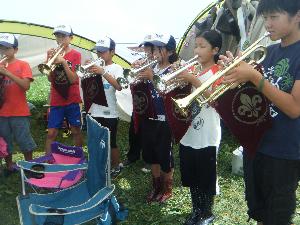 これらは、本番直前の様子です。 スカウトたちも演奏を重ねているので あまり緊張の様子は、ありません。 大会期間中にチームワークと 演奏技術が、どんどん高まっていきます。 |