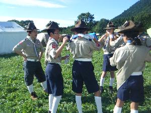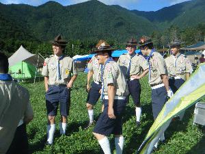 食事等の生活の様子です。 みんなよくやってました。 雨が多くて厳しい状況でしたが、 さすがスカウト!! |