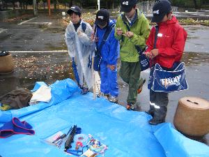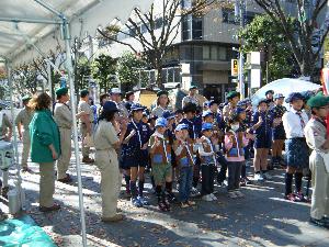 続いてビーバー隊 まずは隊長、お約束のボケ・・・・ スカウトたちはもちろん 真剣です。 |