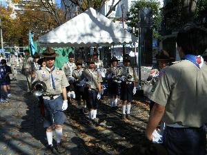 | 地区のスカウトが 市内をパレードします。 まずは、パレードの練習 リズムを感じるために手拍子 |