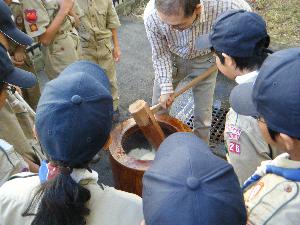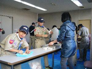 | ボーイ隊は、給仕係り お餅の味付け準備です。 |