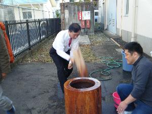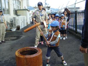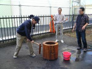 | お忙しい中、団委員である 静岡県会議員の 山田誠様もおいで下さり、 お餅をついてくださいました。 |