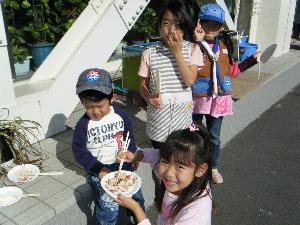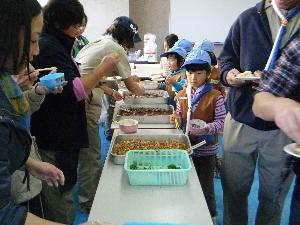 | ビーバーも、つきあがったところで いっせいにつまみ食い。 温かくておいしかったようです。 |