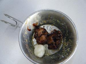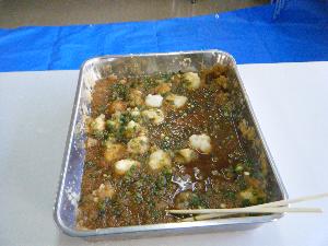 | スカウトの手で、小さくされて 班毎に考えた味付けになりました。 |