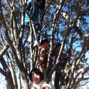 | さらに近隣にある一番高い木にも 登っちゃいました。 木に登るのにも 工夫が必要なのですよ。 |