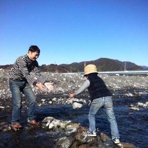 河原で見つけたフランスパン・・・ 石ではありません。(笑) |