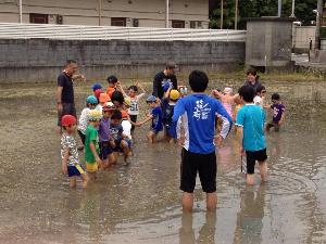 田植え前の田んぼで 思いっきり遊ばせていただきました。 どうもありがとうございます。 |