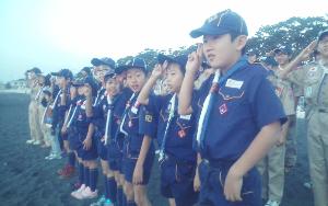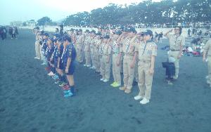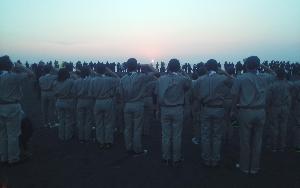雲間から急に太陽が顔を出し 急いで敬礼!! だいぶ寒いですが 国旗儀礼と同義なので 当然制服です。 |