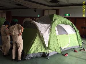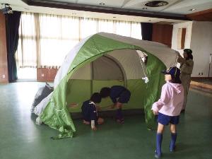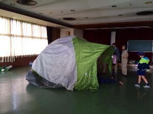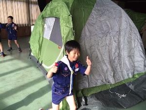 カブ隊はテント設営練習 昨年ご寄付いただいた新型 大きいテントで、組員全部が 寝られそうです。 ありがとうございました。 |