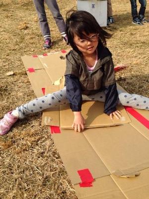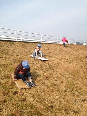 | 活動は安倍川土手での そりすべり ダンボールのそりや ダンボールの滑り台。 思いっきり体を動かしました。 新しいお友達も楽しそうでした。 |
