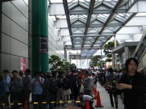 | 長蛇の入場を待つお客様の列。 この方々に演奏を聴いて 頂きました。 |